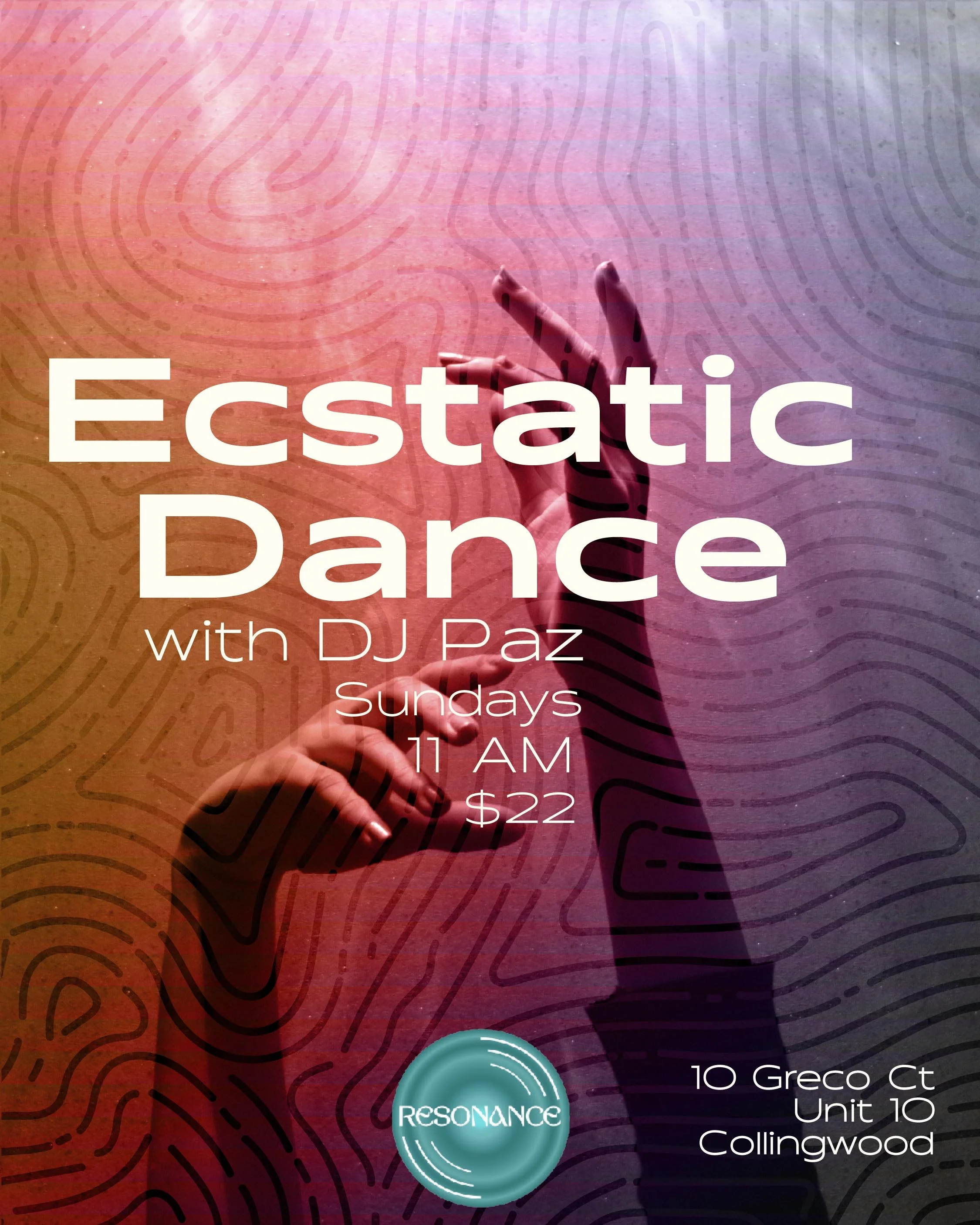 Paz will always surprise us with new sounds and unique textures to incorporate into our bodies. This is a non-judgemental space, everyone is welcome to join, you don't need to have previous experience dancing in any capacity. If you are new to ecstatic dance, expect to receive clear instructions and gentle prompts that will guide you through this special journey.