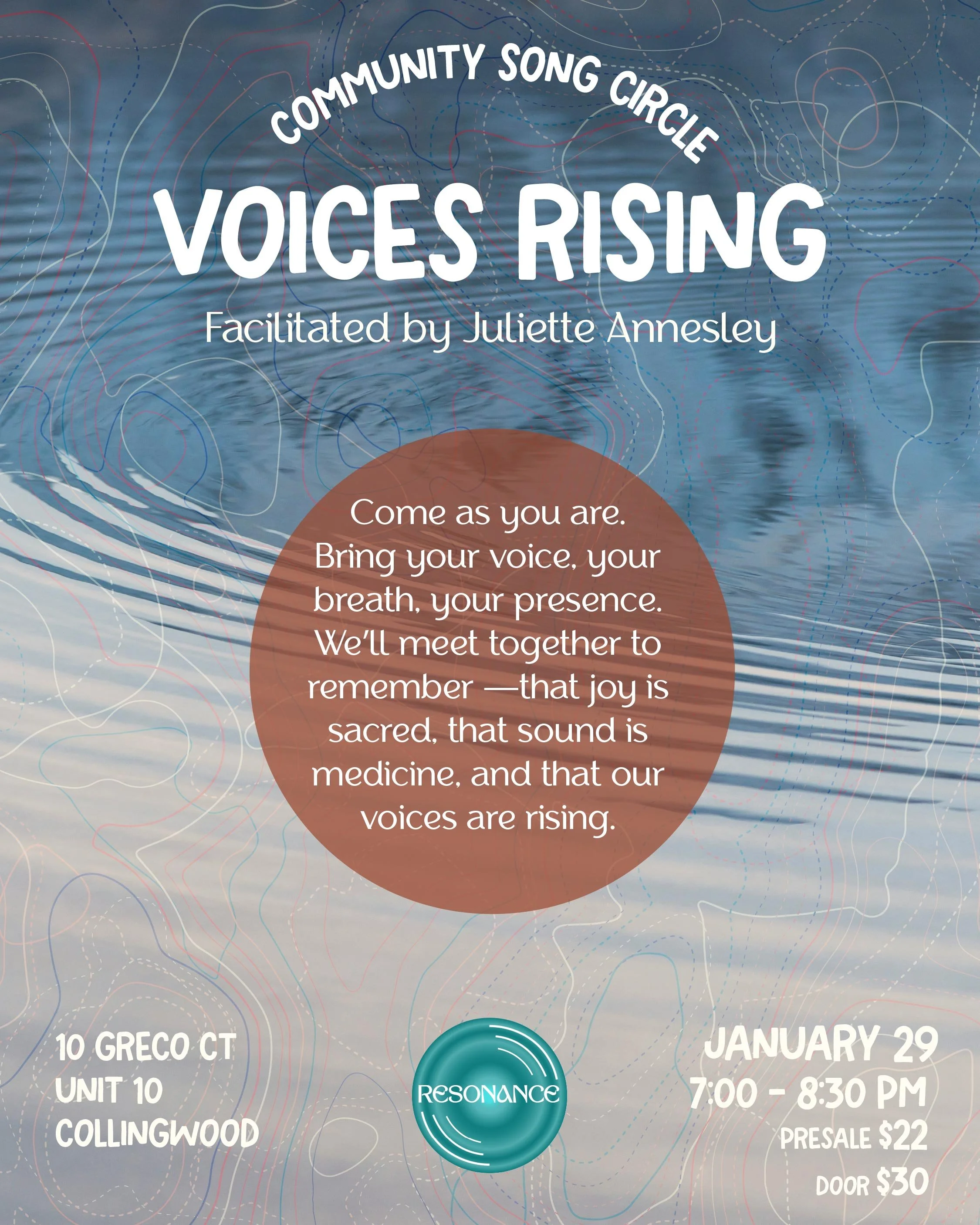 Come as you are. This is a gentle, joy-filled song circle facilitated by Juliette Annesley